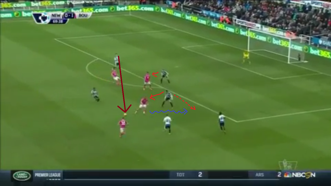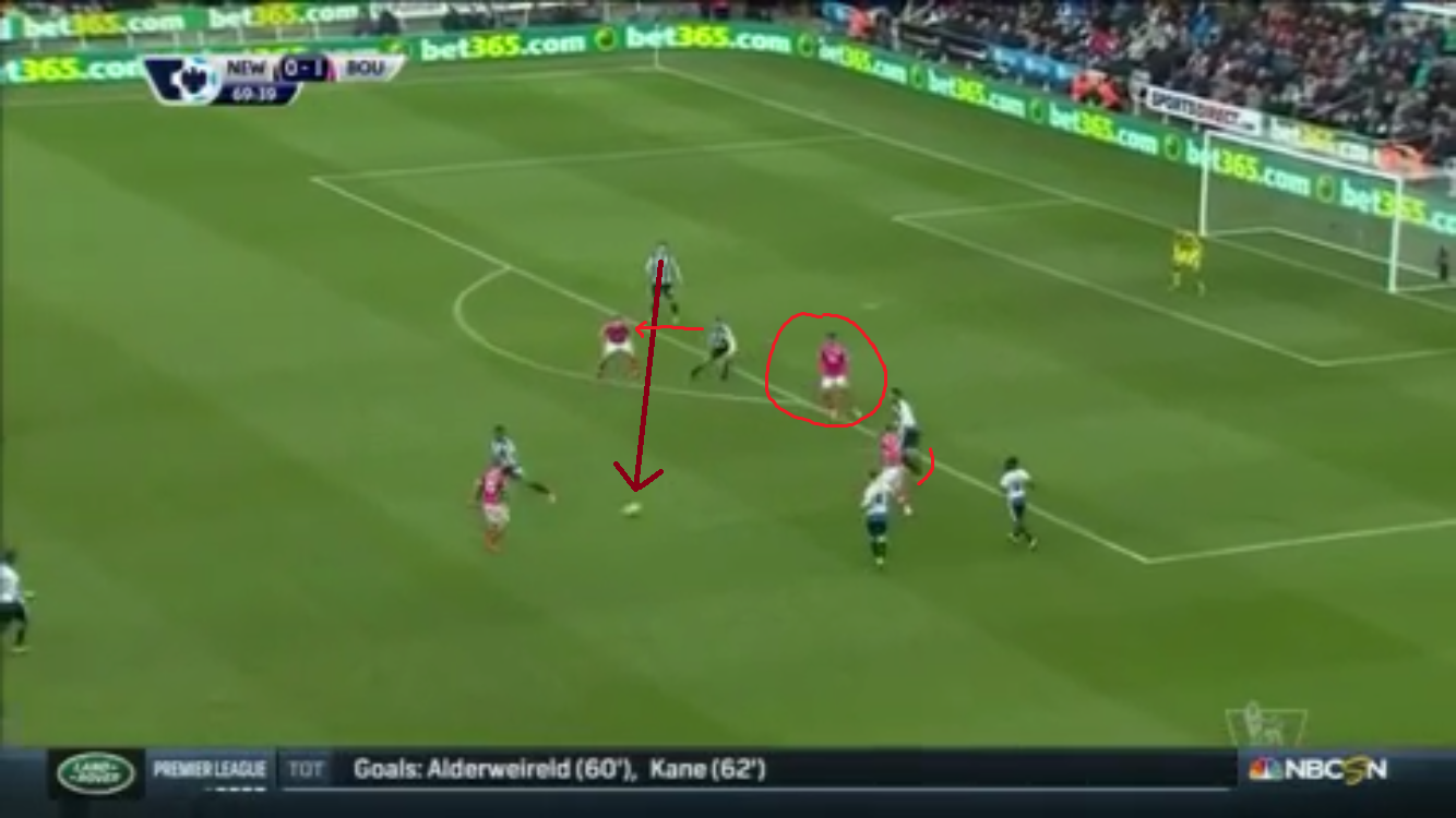 するとヘンダーソンが右45度のあたりでボールを受けに来たのでそこにはたく。